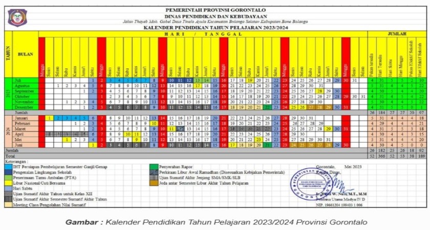 Kalender Pendidikan Provinsi Gorontalo Jenjang PAUD/TK, SD/SDLB, SMP/SMPLB, SMA/ SMALB dan SMK Tahun 2023-2024