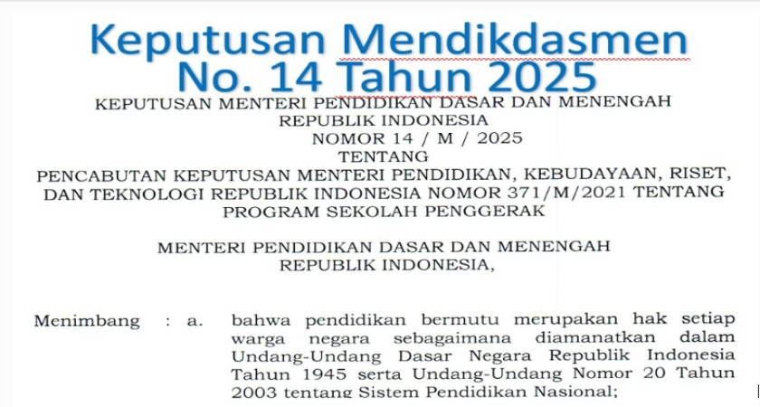 Program Sekolah Pengerak Resmi Dibubarkan, Sesuai Keputusan Mendikdasmen Nomor 14 Tahun 2025
